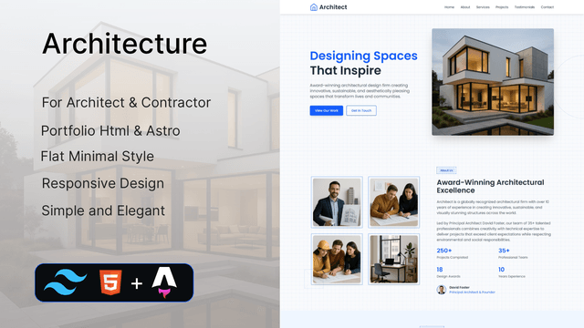 Architecture is a Architect Portfolio Website Template crafted with Astro, designed specifically for Architect and Contractor