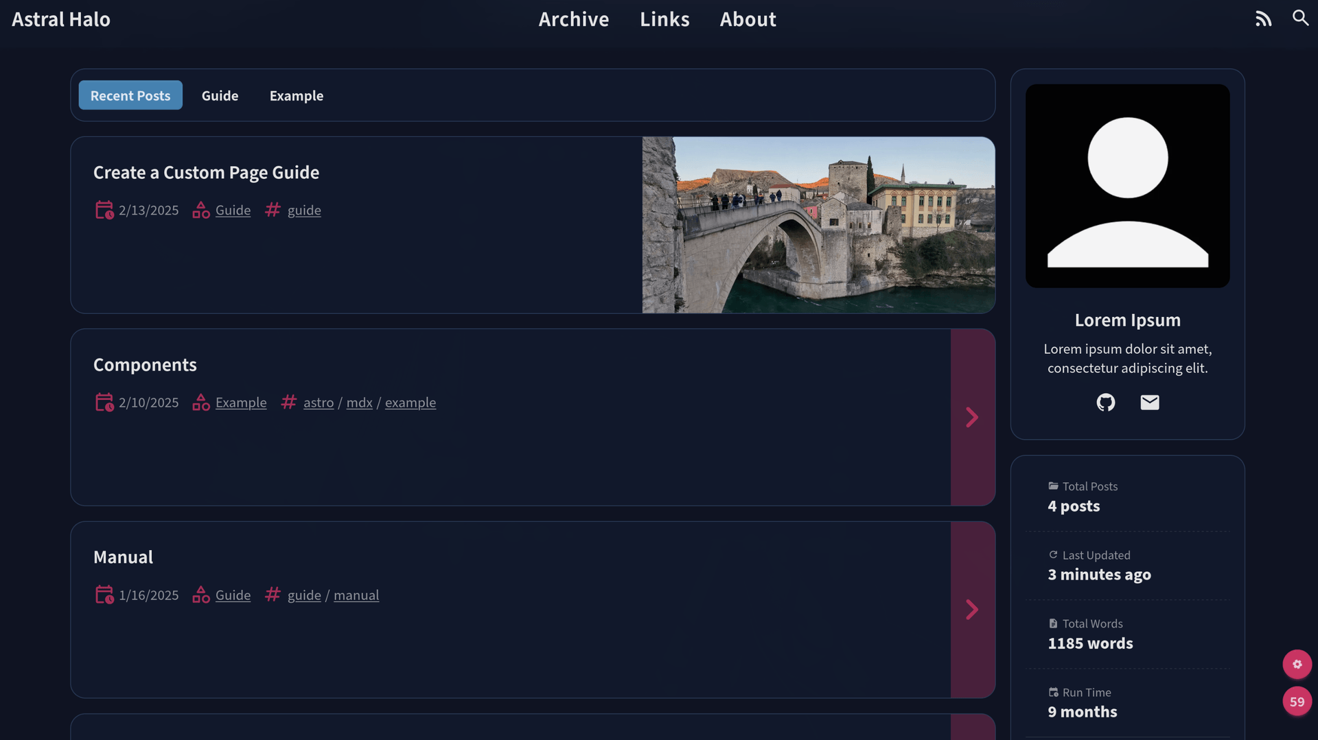 Astral Halo is a static blog template developed with Astro.