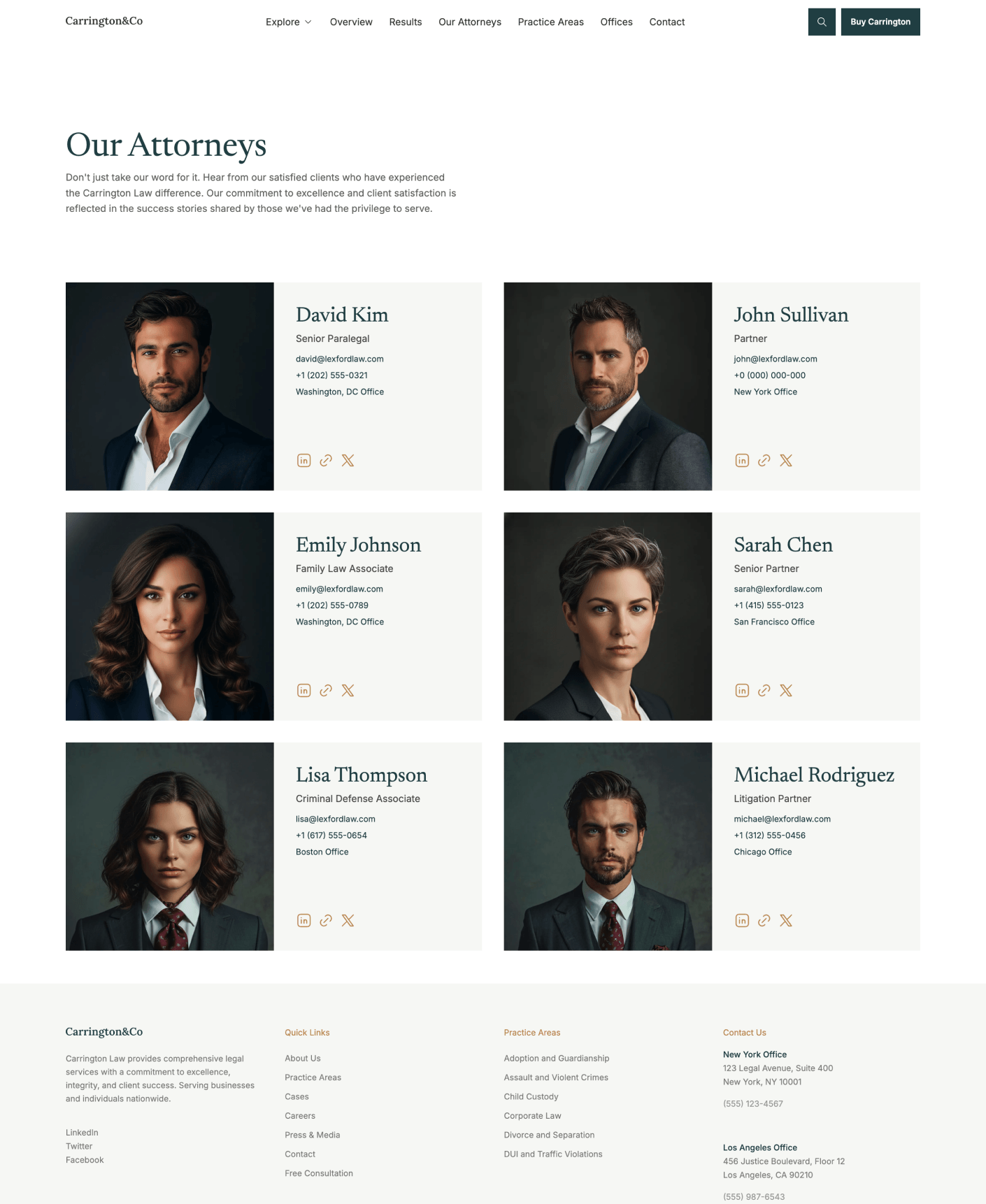 Carrington is a polished, modern website template crafted for law firms and legal professionals. Developed with Astro and Tailwind CSS, it offers outstanding speed, refined design, and easy customization.
